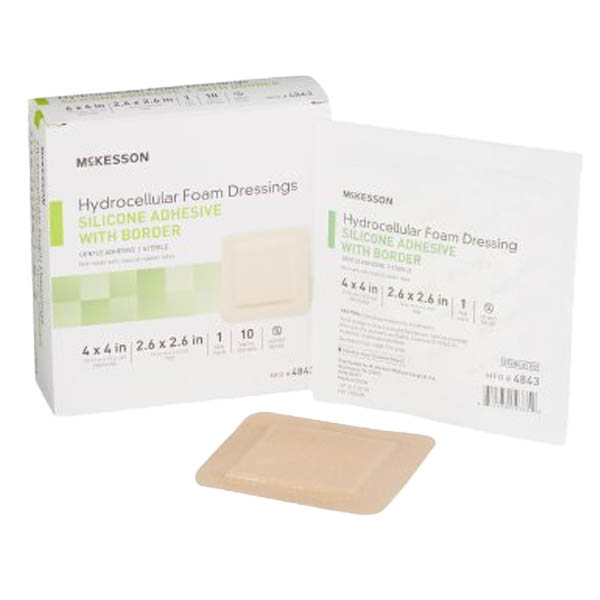 Foam Adhesive Silicone With Border 4inX4in McKesson 4843 10Ea/Bx 20Bx/Cs (MK)