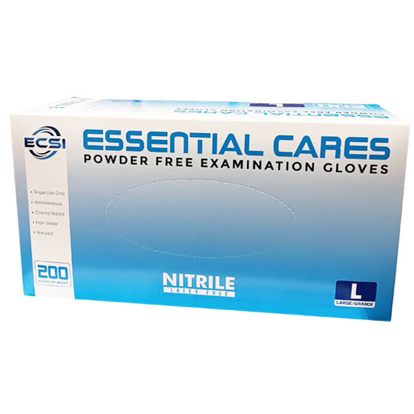 Nitrile Powder Free Examination Gloves Blue, Essential Cares Large 200pc/Bx 10Bx/Cs