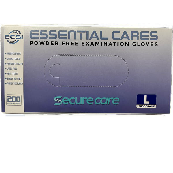 Securecare Nitrile Powder Free Examination Gloves Blue Essential Cares Large 200pc/Bx 10Bx/Cs