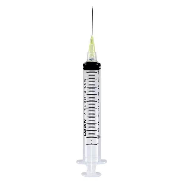 Syringe 10cc Latex Free 21GAx1 Luer-Lok Tip With Needle JD+10L2125-WEI 100pc/Bx 9Bx/Cs